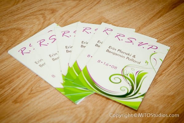 Erin Plonski & Benjamin Pollard set their wedding date for August 16th, 2008 at the Waters Edge Resort & Spa in Westbrook, Ct. They were in need of a custom designed wedding invitation that corresponded well with the wedding theme.