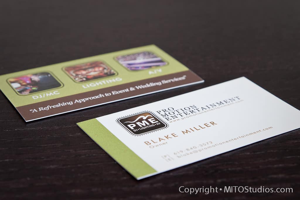 MITO Studio’s goal was to rebrand Pro Motion Entertainment with a clean and modern website to match their personality, market, and collateral materials. Part of the collateral materials created by MITO Studios was a dual sided business card displaying eye-catching photographs and important content with an elegant design.