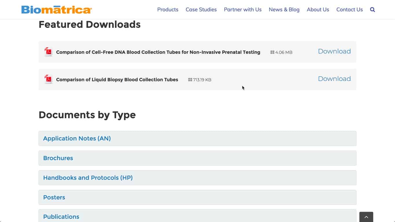 With our guidance for the launch of their newly updated website, we created a Downloads page containing hundreds of PDFs and information sheets that were on the old Biomatrica site. Over 250 individual download packages spanning 7 different categories. The consolidation was completely worth it and created a much more user friendly download area for site visitors.